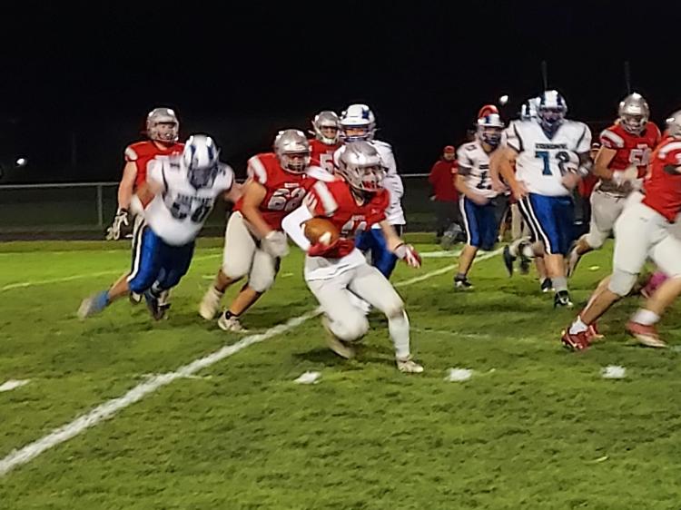 South Portland set the tone by forcing a Kennebunk three-and-out, then driving to take the lead for good on a 5-yard touchdown run from quarterback Easton Healy. The Rams responded with some trickery early in the second period, as quarterback Gray Compton caught a 10-yard touchdown pass from Jaiden Homa, but the Red Riots drove right back down the field and got a 27-yard TD scamper from Matthew Berry to take a 14-6 advantage and after a timely goal-line stand right before the horn, went to the break on top.