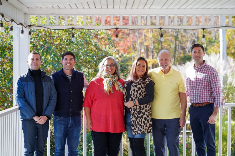 Principals gathered at The Good Table in Cape Elizabeth, which the Kostopoulos family recently sold to the Prentice Hospitality Group. From left to right, Prentice Vice President Alexander Wolf; President Casey Prentice; Lisa Kostopoulos; Jessica Kostopoulos; Tony Kostopoulos; and Prentice Corporate Executive Chef Matt Ginn. Courtesy Prentice Hospitality Group