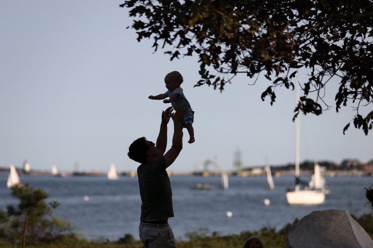 Andrew Williams of Brunswick plays with his 1-year-old son Leo on the East End Trail last month. Ben McCanna/Staff Photographer