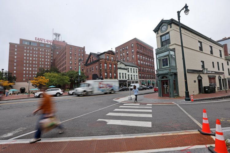 The Hay Building, right, is designated as a landmark within the Congress Street Historic District. Ben McCanna/Staff Photographer