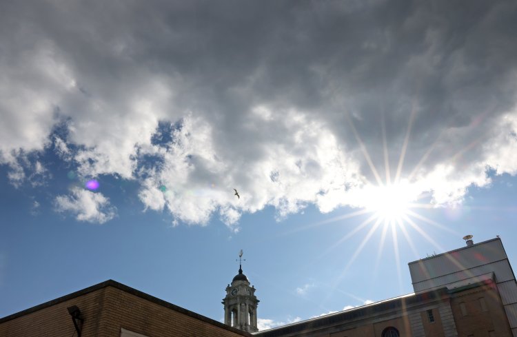 The clock tower at Portland City Hall soars into a promising blue sky on Thursday. Ben McCanna/Staff Photographer