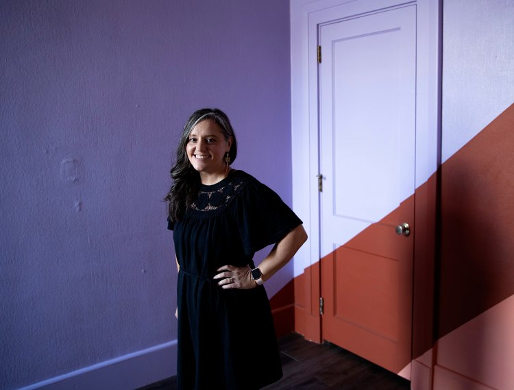 The room was maybe 100 square feet in a former bank in downtown Biddeford, and the carpet did not smell great. But the window looked out on Main Street, and the monthly rent was unbeatable. So Amira McIntire replaced the flooring and painted the walls lavender with bold stripes of brown and coral.