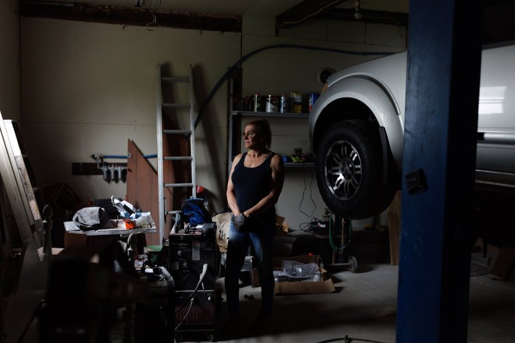Gabby Profenno in her home auto shop in Lisbon. Like many independent repair shop owners, Profenno is worried that the cost to access digital information about vehicles will prove to be too expensive for her to stay in business. Brianna Soukup/Staff Photographer