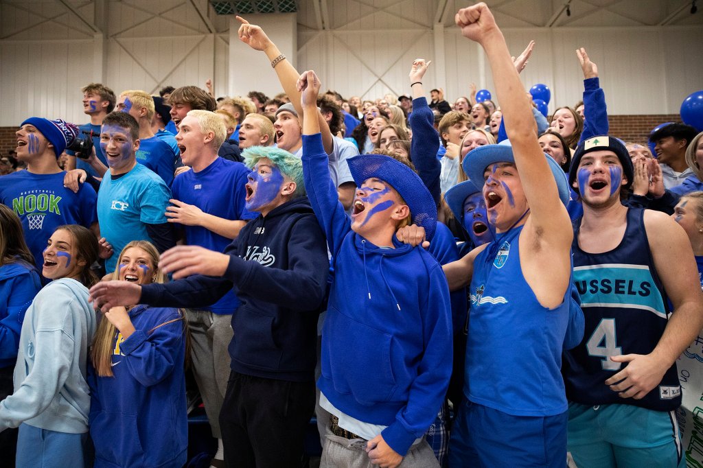 With a 9-2 Gorham lead in the second set, the blue-clad and face-painted students started a chant of “It’s too easy.” On cue, the next Rams serve failed to clear the net.