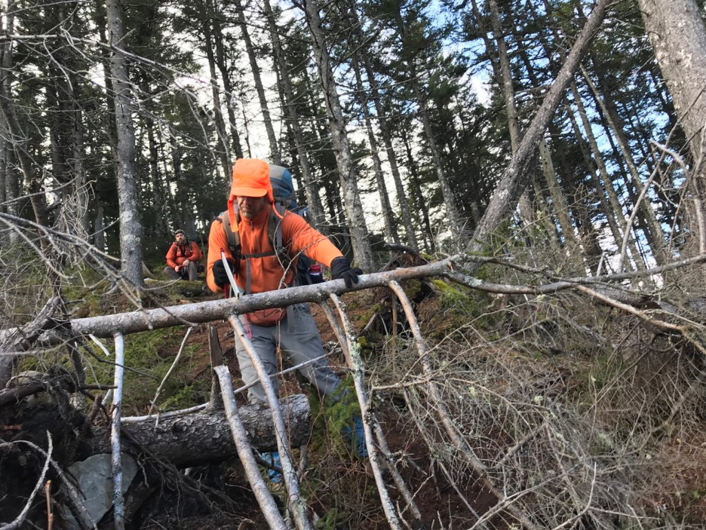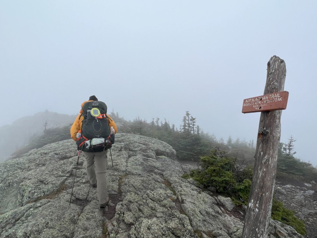 We’ve been to the Bold Coast in Cutler and backpacked a 30-mile section of the International Appalachian Trail. The new Great Circle Trail route in the Nahmakanta Public Land was four perfect days and 30 fantastic miles of sauntering. This year, only two of us could make it. We opted for a loop over the Bigelows, and though it was wet, windy, cloudy and cold, it was still a great hike. And we made sure the slackers were appropriately dissed.
