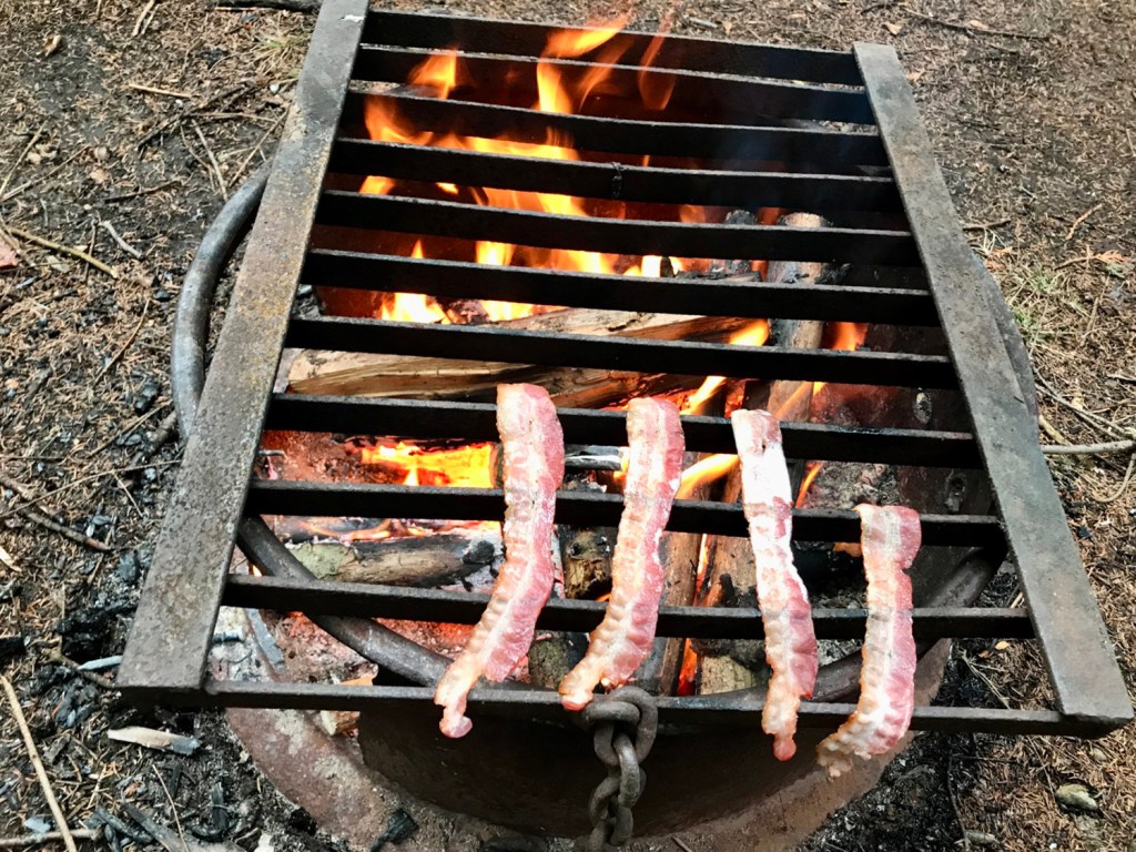 By now you’ve probably noticed that these friendly backpacks are themed with words beginning with the letter “B.” Boys and backpacks are understandable, but bacon on a multi-day hike? You bet! In a Millinocket hotel before the start of an early trip, we met a couple heading out to their hunting camp who had just come from the grocery store with packages of pre-cooked bacon. Brilliant, we thought, but it was too late; our shuttle to Katahdin Woods and Waters National Monument arrived and off we had to go. But bacon has been a hike staple ever since.