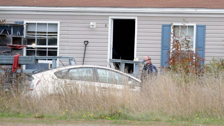 A Maine State Police trooper searches for evidence Oct. 13, 2019, outside Andrew Sherman’s home in Richmond. Andy Molloy/Kennebec Journal file