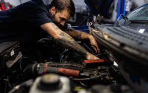 Jacob Sirois works on a Ford F150 at Jason’s Auto Service in Hollis on October 17. Brianna Soukup/Staff Photographer