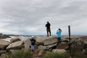 People observe the waves from a seawall in Camp Ellis on Saturday, Sep. 16. Ben McCanna/Staff Photographer