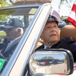 The procession was headed by South Portland native Edward Cook, a Korean War veteran who recalled serving with a shovel in one hand and rifle in the other.