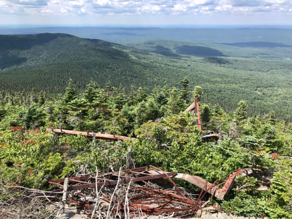 The remains of the old firetower on Boundary Bald Mountain lies in a rusted heap on the summit