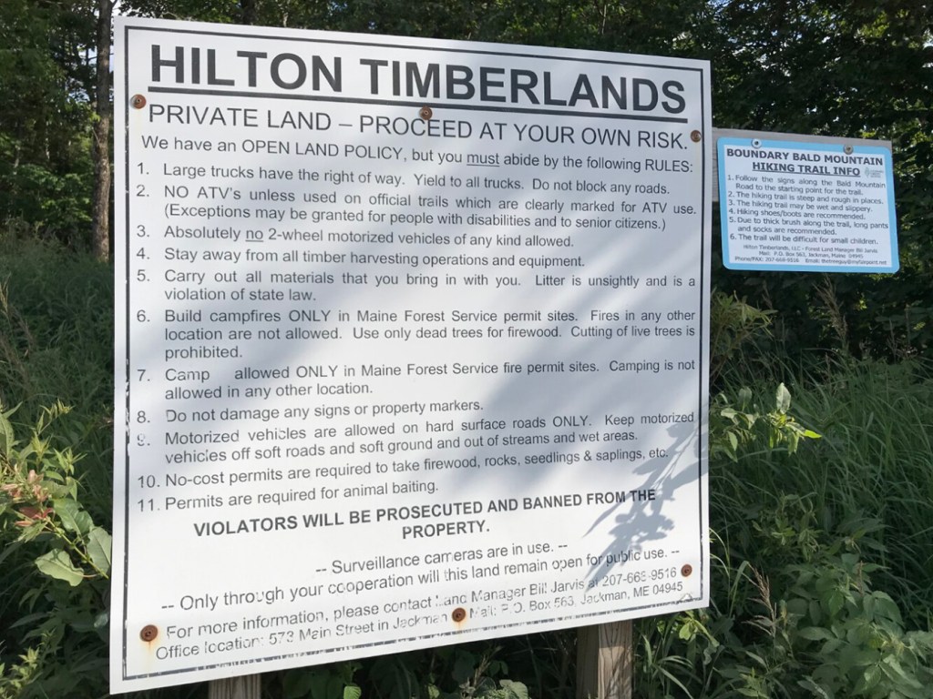 The 4-mile drive from U.S. Route 201 to the Boundary Bald Mountain trailhead is on active logging roads. Please yield to all logging trucks.