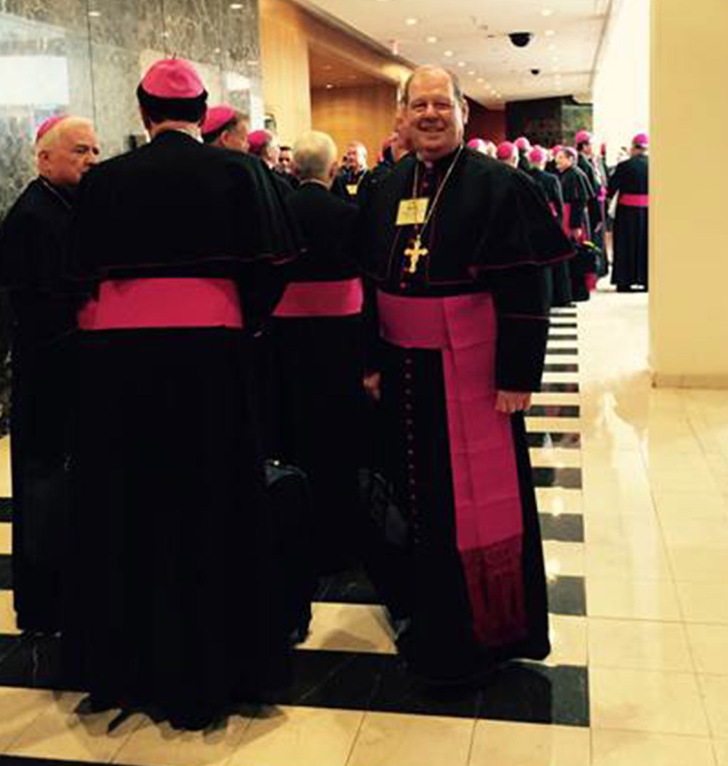 Bishop Robert Deeley of Maine was among the nation's bishops who gathered outside the Cathedral of St. Matthew the Apostle prior to noonday prayers with Pope Francis on Wednesday.