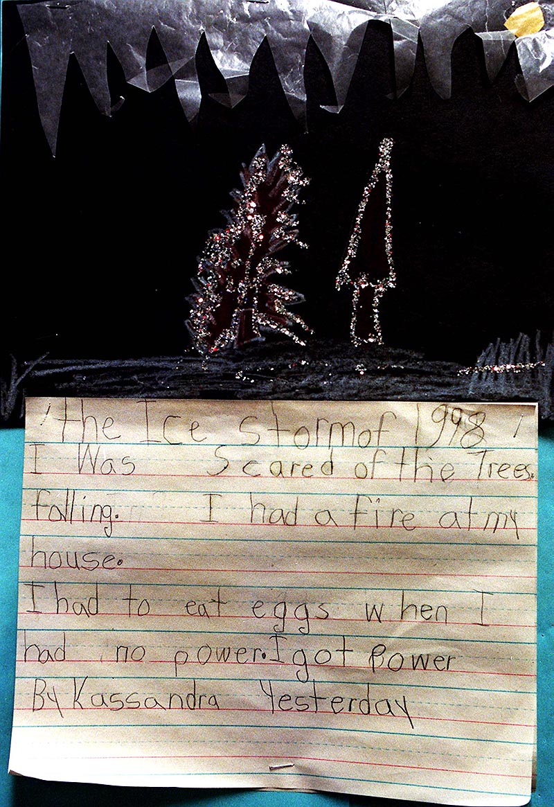 FEB. 6: Kassandra Haines, a first-grader at Bethel's Crescent Park School, had lasting memories of the great ice storm of 1998. The students there were given projects to share their feelings about the storm.