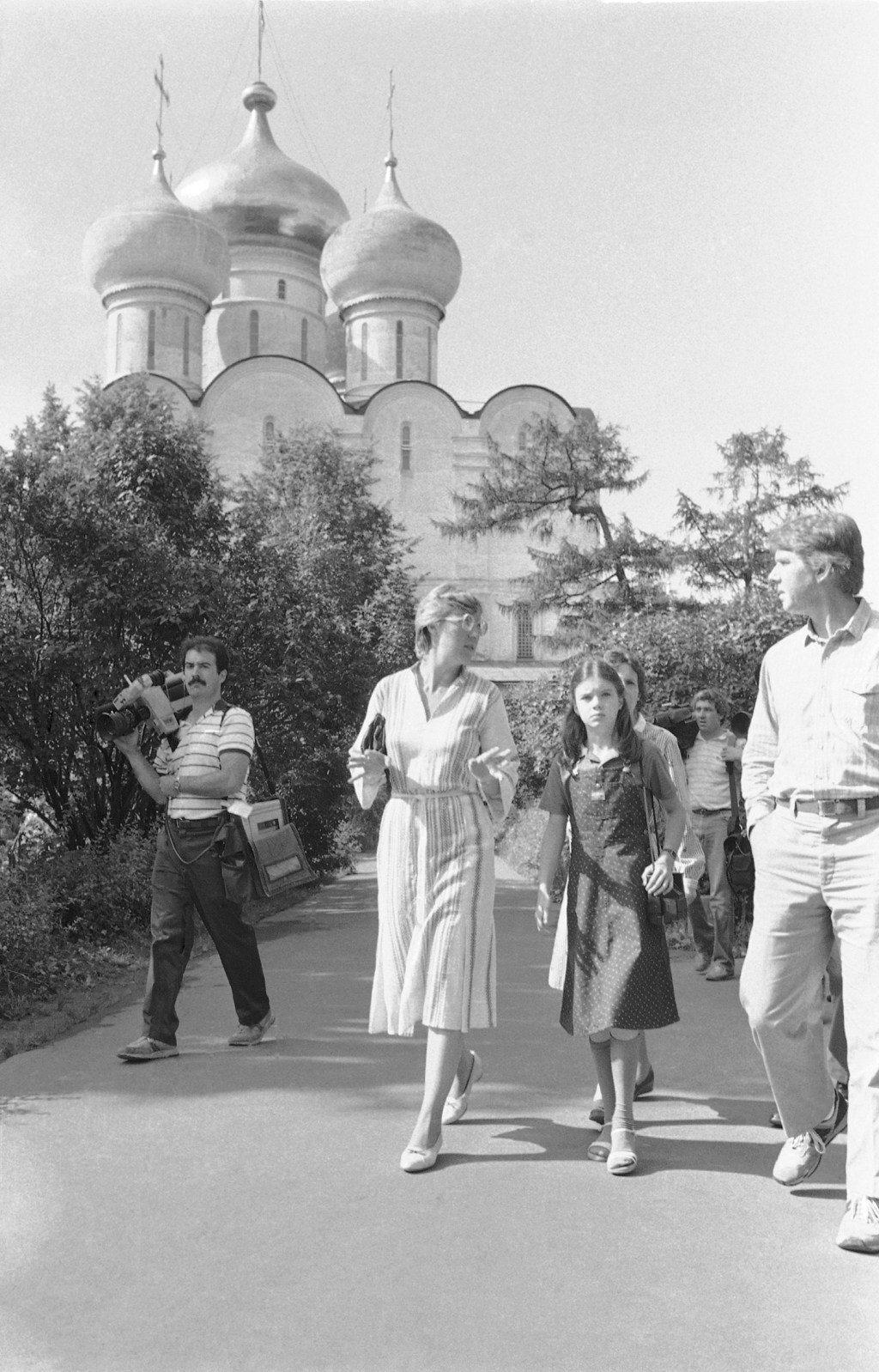 Smith took a tour of Moscow on July 19, 1983. Here she and a guide stroll the grounds of the Novodevichy Convent.