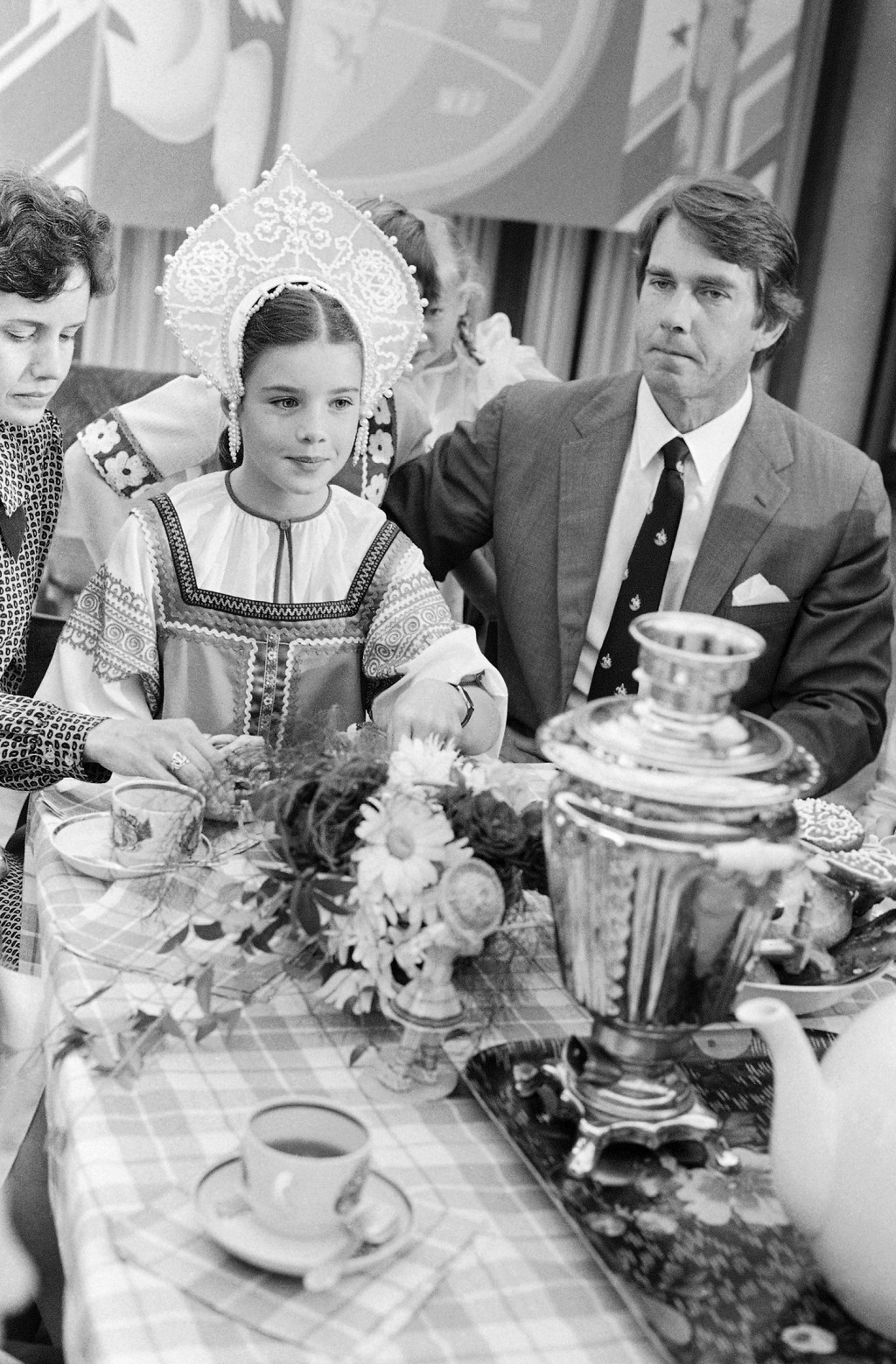 Smith, invited to the Soviet Union by Yuri Andropov, visited Petrodvorets near Leningrad July 17, 1983, with her friend Natasha Kasharina.