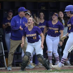 Amber Bretton drives in the go-ahead run as the Rams reach the Class A South semifinals with an 8-7 win. -