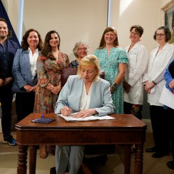 The new law, signed during a ceremony at the State House Wednesday, allows abortions later in pregnancy and is one of the least restrictive state laws in the nation.