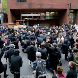 Taking a knee during a peaceful Portland protest echoes a respectful ritual from youth soccer games.
