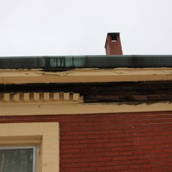 Animal damage and 150 years of Maine winters has left a portion of the eaves open to the weather.
