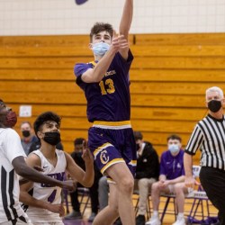 Stags get 26 points from Seth Huntington in a 64-55 victory.