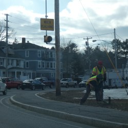 The traffic signals are designed to remain green unless someone pushes a pedestrian crossing button or side street traffic on Water Street, Middle Street, or Route 27 triggers the signal sensors.