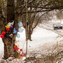 In the dark of night Wednesday, battery-operated candles lit a memorial at the pine tree on Hinckley Road where the crash occurred, 6 miles from Route 23 and 2 miles from downtown Clinton.