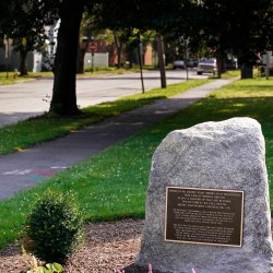 A granite stone bearing a bronze plaque has been installed in Longfellow Park, near where 6 young people died in the state's deadliest fire in over 2 decades.