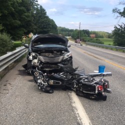 Daniel Gautreau, 59, was riding east on Route 2 in Hanover when his Harley-Davidson hit the car in front of him and ended up in the path of an oncoming vehicle.