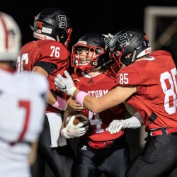 Red Riots overcome slow start, ride Whitmore's brilliance to 49-34 regional final victory over Sanford.