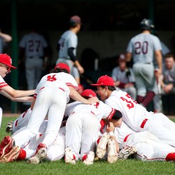 Red Riots get great pitching, key hits and take advantage of Stags' mistakes en route to 12-0 victory.